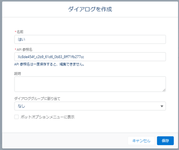 同じ要領で、「+ダイアログを新規作成」から「いいえ」も作成します。