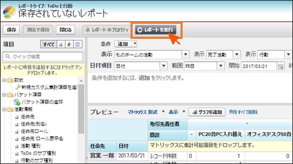 それでは、これらの要望を 活動のレポート(マトリックス表示)で実現していきます。