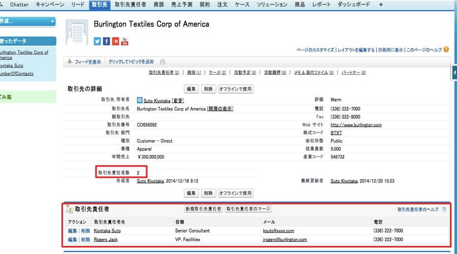今回は取引先に所属する取引先責任者の人数を取引先ページに表示してみます。