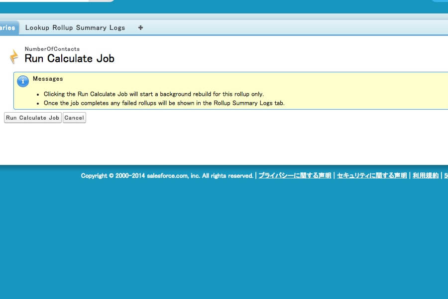 下記の「Run Calculate Job」ページに自動的に遷移します。ページ下部の「「Run Calculate Job」」ボタンを押下することにより、既存データの積み上げ集計処理が実行されます。