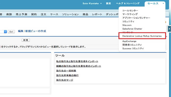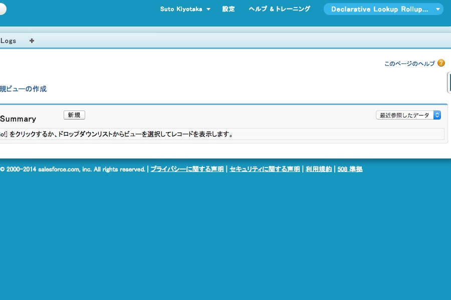 「Lookup Rollup Summaries」ページに戻ると、SFDC標準のタブページが表示されています。