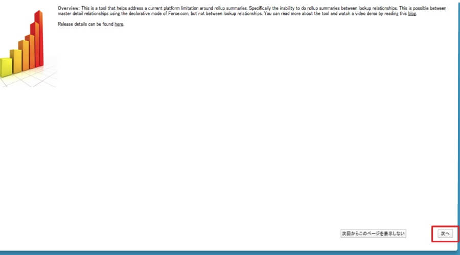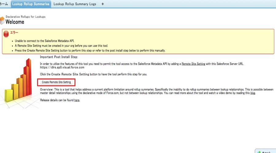初めて「Lookup Rollup Summaries」ページを開くと下図のようなエラーメッセージが表示されるようです。